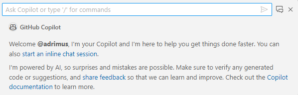 This feature is a bit like the copilot which uses Bing chat you might be used to. If you type / at the beginning of the chat you get a list of commands you can use. For example /explain, this would give a detailed explanation of the line of code that you’re on.